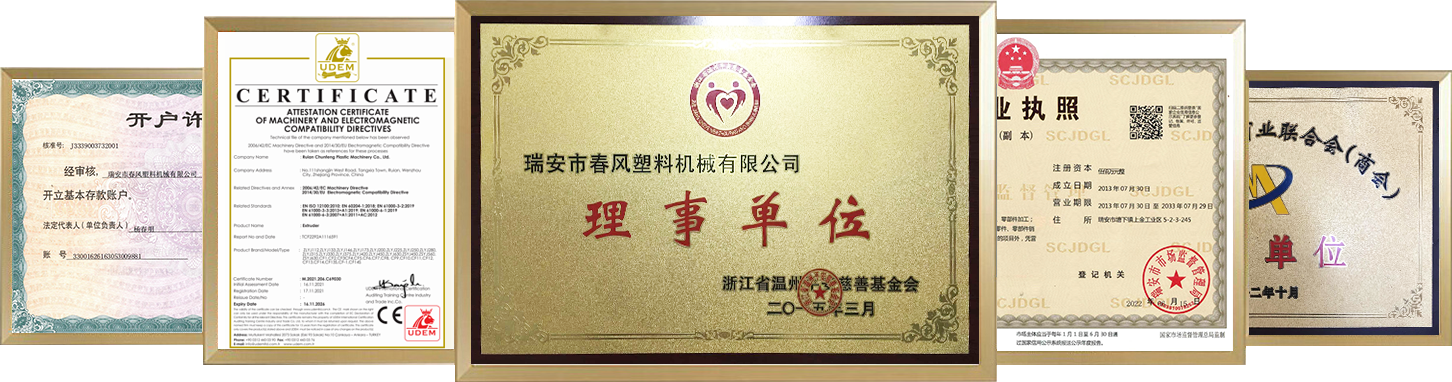 瑞安市春風塑料機械有限公司是一家專業生產成套塑料包裝設備的企業。本公司主要生產造粒機、粉碎機、切粒機、泡沫機、吹膜機、背心袋機、尼龍膠機、撕裂膜機、管子機、片裁機、接絲機、自動洗料機、洗袋機、自動離心脫水機等等。公司自創辦以來堅持;誠信為本、務實創新的經營策略,使自身得到快速的發展.面對市場激烈的競爭,本企業縝密決策、長遠規劃.重質量、守信譽是企業的宗旨...
